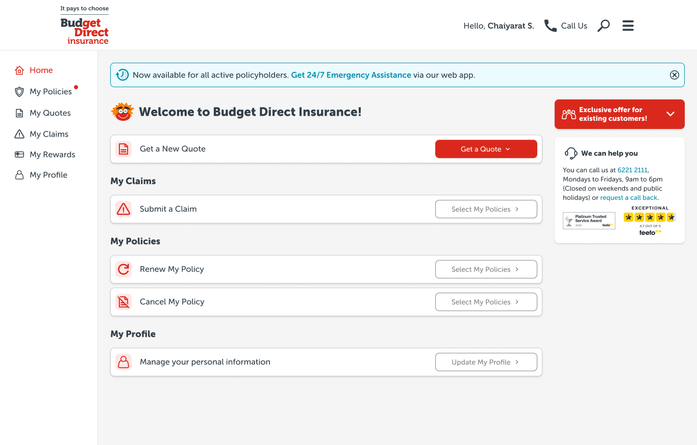 The original Policy Manager homepage served only as a static repository for existing policies and unfinished quotes, leaving users unaware of key self-service features like policy renewal, claims submission, and self cancellation.