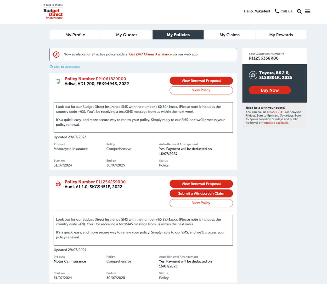 "My Policies" Page