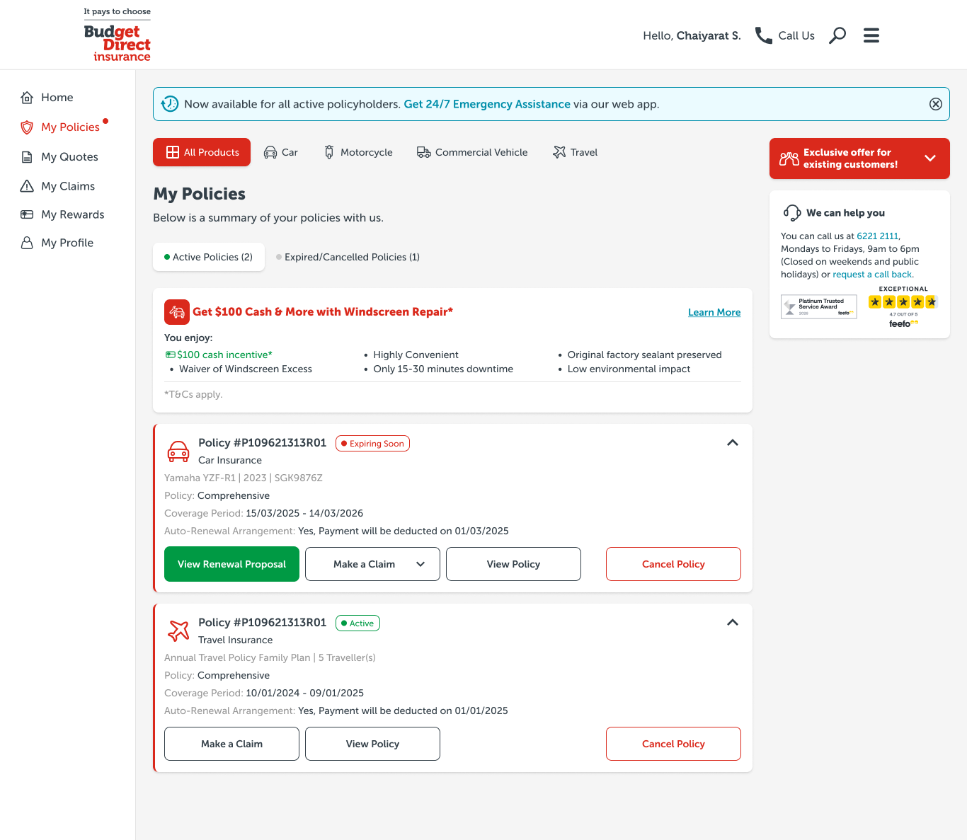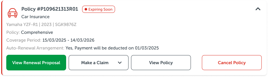 • Added status tags (Active/ Expiring Soon/Expired) with expiring policies pushed to the top for instant policy awareness.
