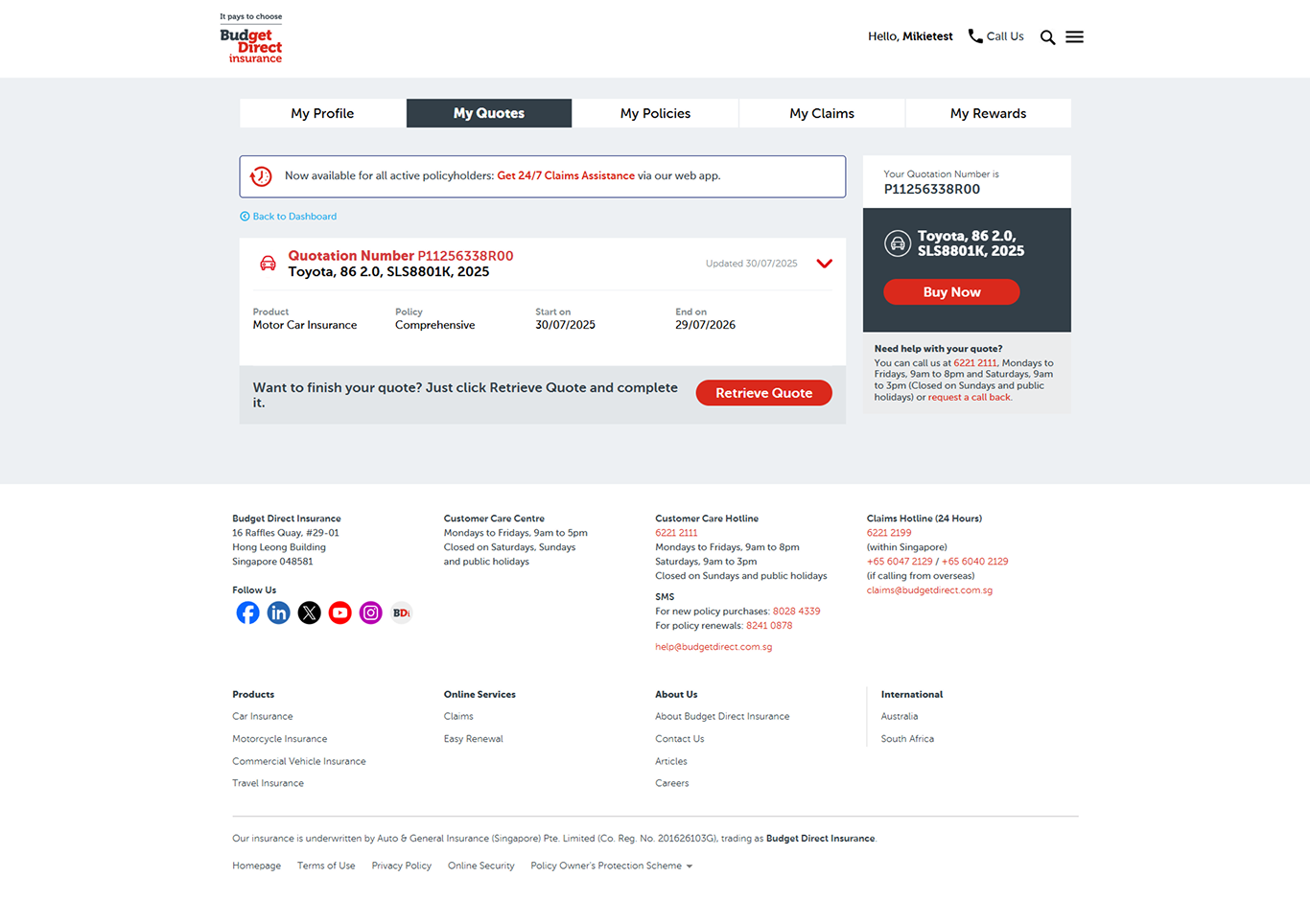 • Switched "My Quotes" and "My Policies" link because more users visit Policy Manager to sort their policies.